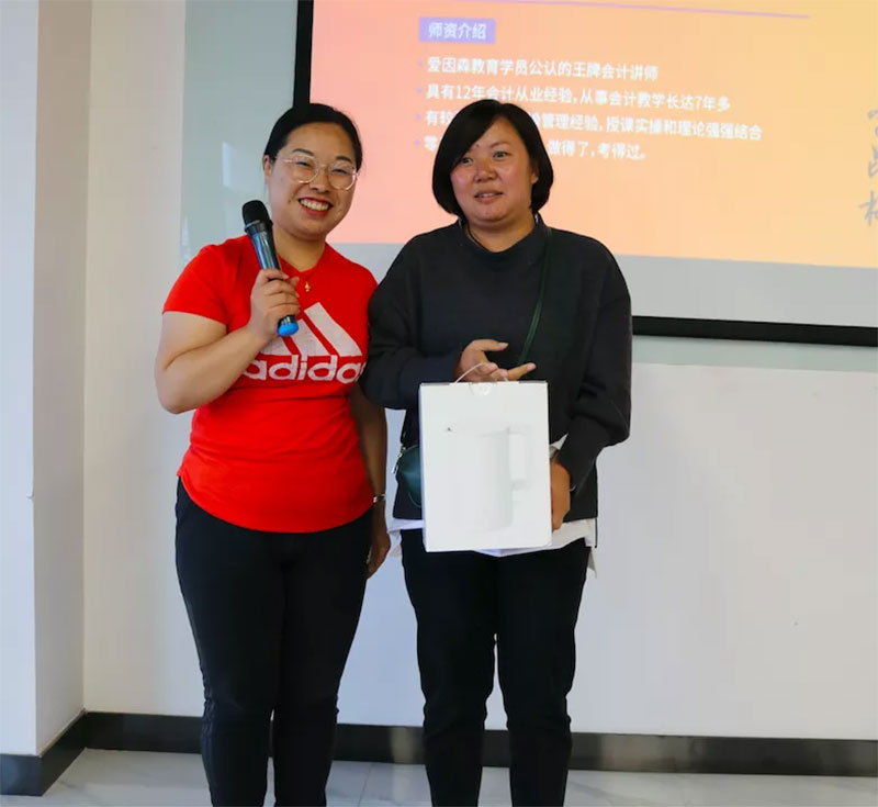 為緩解大家學習的壓力,在休息之余,主持人還通過游戲互動、抽獎等環節為今天參加課程學習的同學們送上了精美的禮物。在大家的期待中,一等獎、二等獎、三等獎的幸運得主也相繼出爐,電熱水壺、小米音響、太陽傘也名花有主了。今天的幸運學員會是誰呢,我們一起來看看: